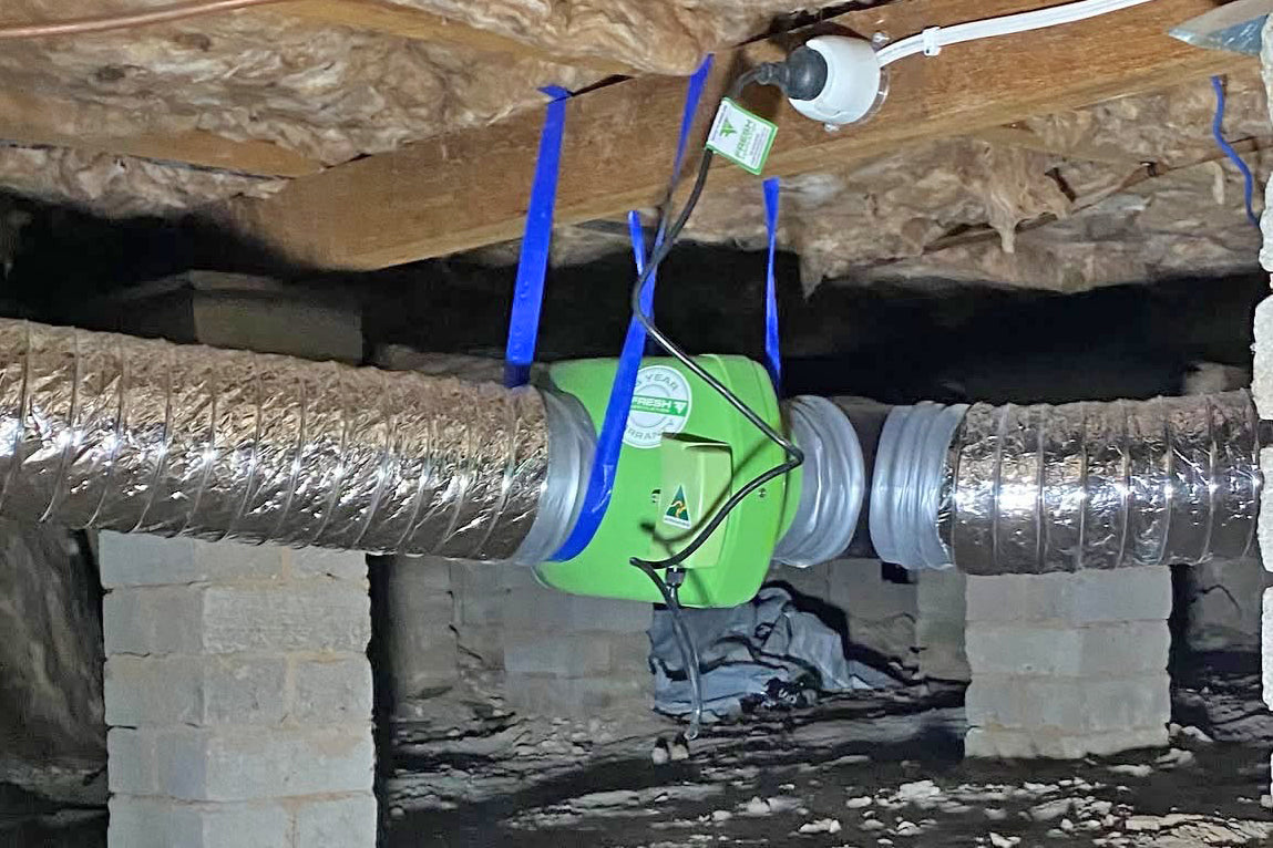 - Positive Pressure Subfloor Ventilation – Fans are installed to push fresh air into the subfloor, displacing damp, polluted air.