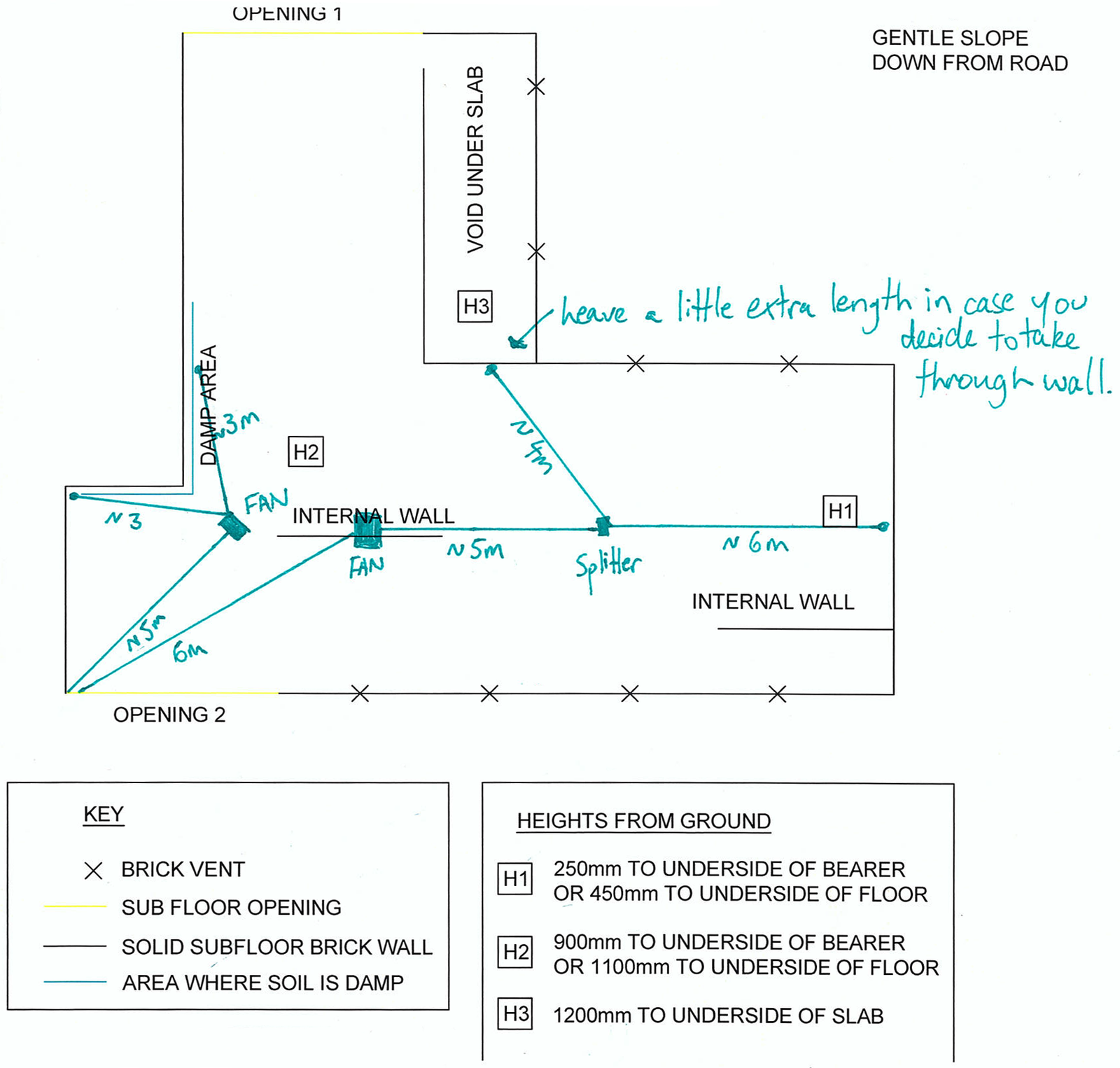 Another key challenge is airflow short-circuiting. With one fan supplying air and another extracting it, air naturally takes the path of least resistance and can move directly between the two fans, bypassing large sections of the subfloor. Without careful layout and airflow control, this can leave pockets of stagnant air untouched.