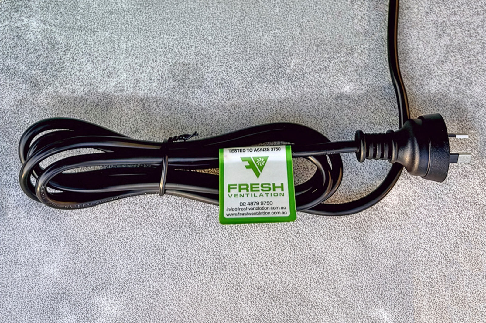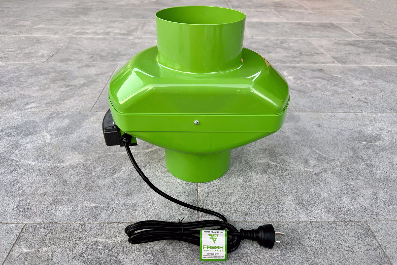 All of our centrifugal fans are supplied with a 3-pin Australian plug and lead, including a safety earth. While our fans are independently tested and certified for Australian electrical safety compliance and carry the Regulatory Compliance Mark (RCM), each individual unit is also tested and tagged at the time of dispatch to ensure it is safe and in full working order on arrival.