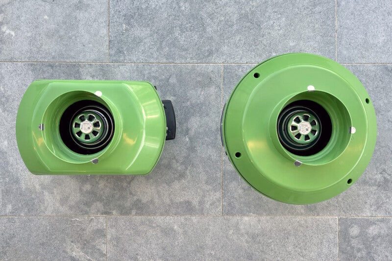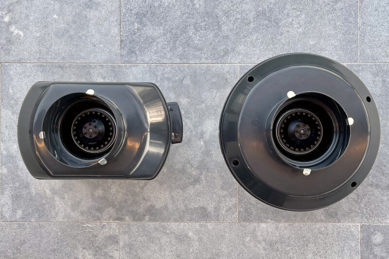Low Profile fans are oval with a width of 340mm and a height of 217mm. The smaller footprint means that Low Profile fans are recommended for shallow installations where access height is limited. Our Low Profile fan housing features an updated design with improved air deflection fins inside. The Low Profile version now has marginally more air flow with marginally less noise, as the improved fins create less air turbulence (compared to the Normal Profile version).