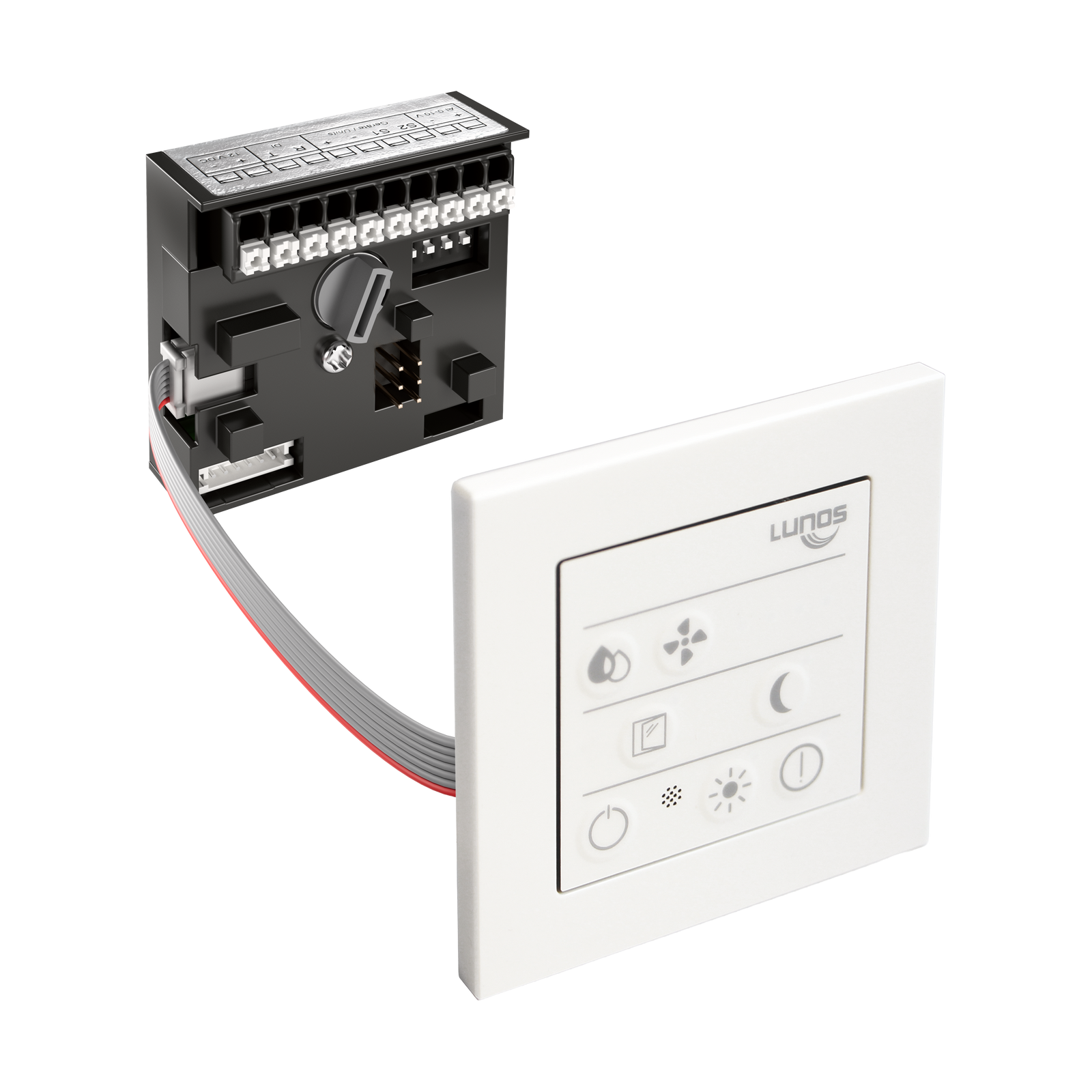 The Smart Comfort Control is the premium control option for LUNOS e²60s and is one of two control systems available. It is designed to optimise indoor comfort while protecting the building fabric. With integrated humidity and temperature sensors, it automatically adjusts ventilation to help prevent excess moisture, mould growth, and frost-related issues.