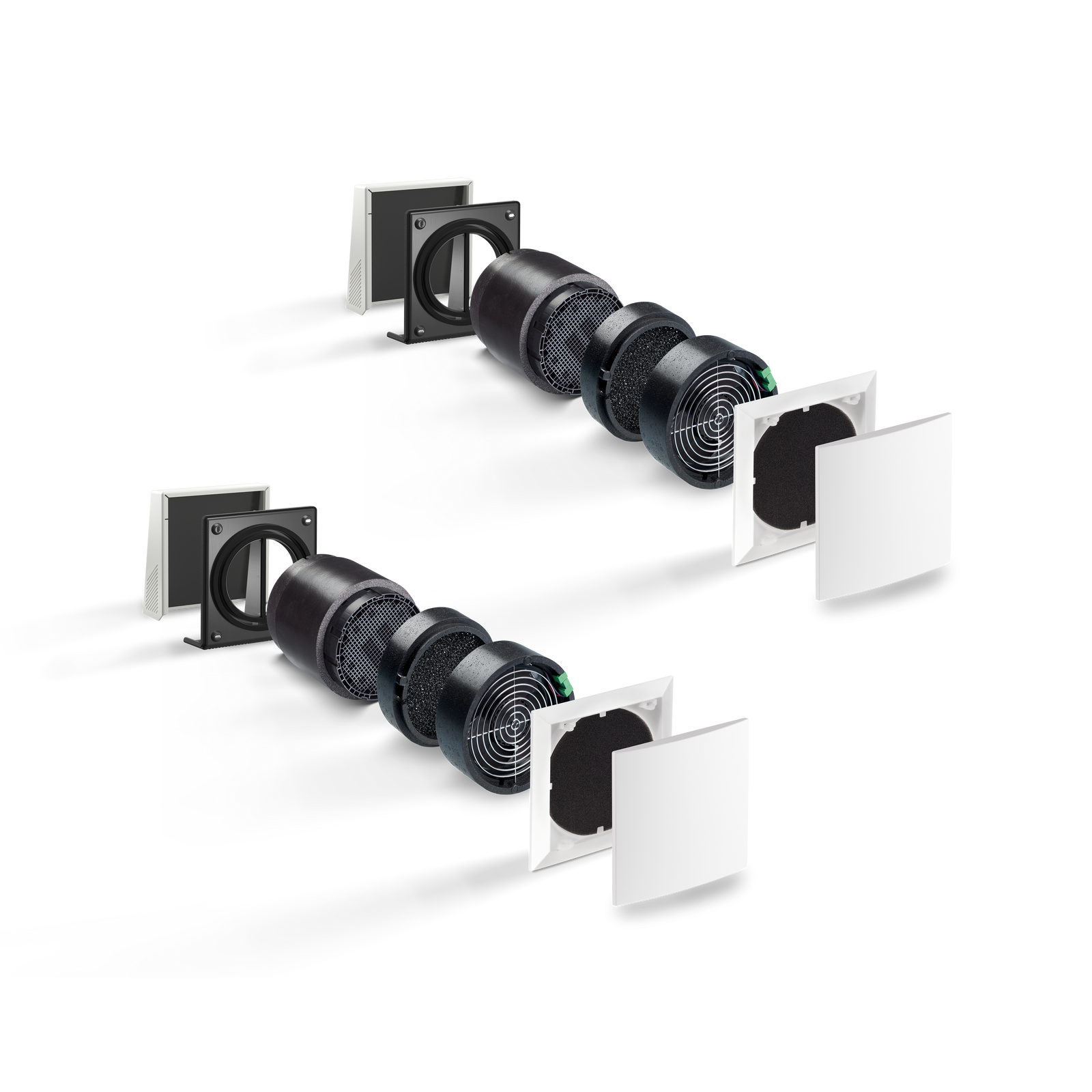 The reversing EC motors used in the e²60 drive market-leading axial fans designed for exceptionally quiet operation. Housed within a flow-optimised EPP (expanded polypropylene) foam enclosure, the already low-noise EC motors are further acoustically dampened, effectively “silencing” the unit. As a result, the e²60 is among the quietest decentralised ventilation systems in its class.