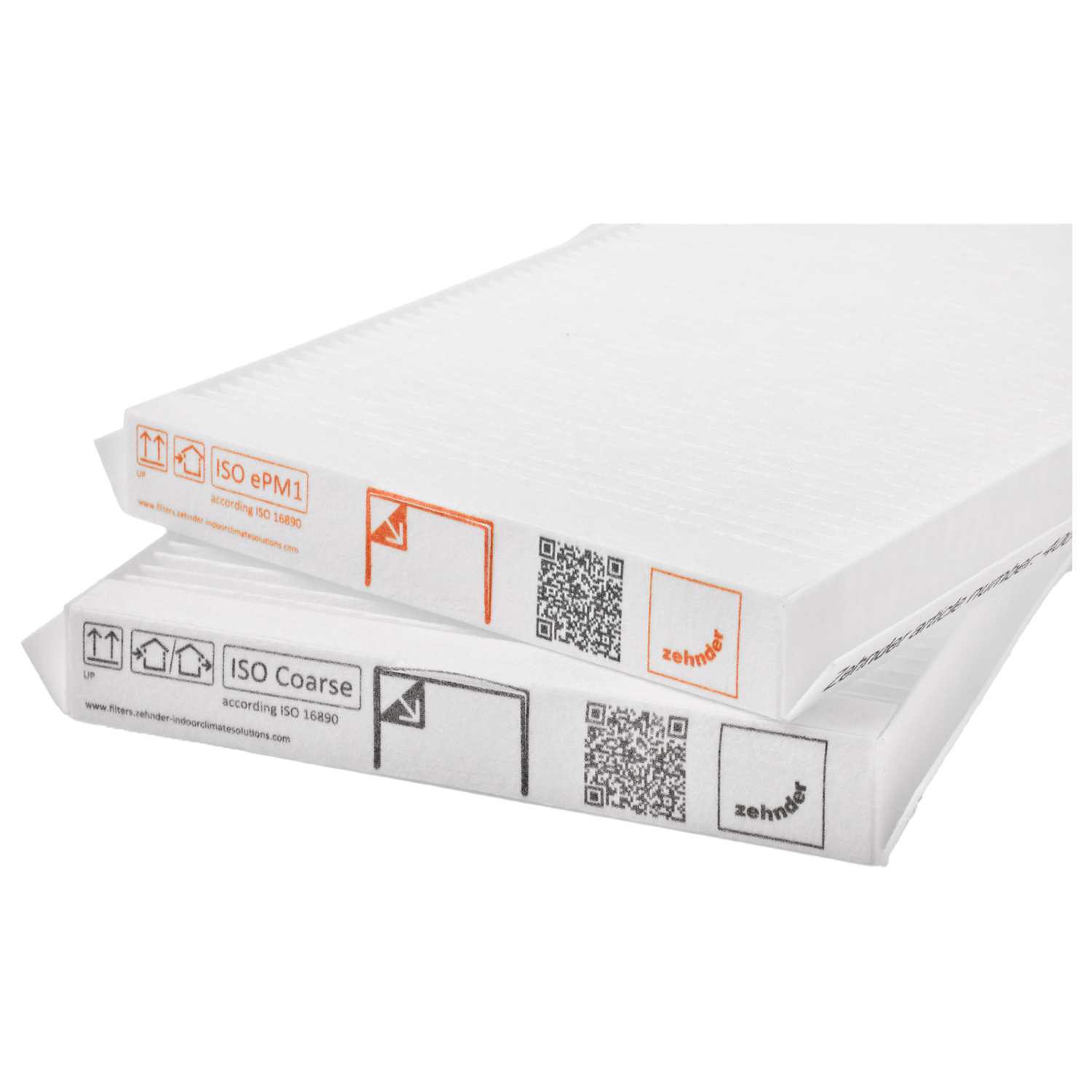 - Efficient Filter (F7 Supply): prevents small particles such as pollen, fine dust, mould and bacteria from entering the house. This is also known as ePM1 F7, 65% (ISO 16890): At least 65% of particles between 0.3 and 1.0 µm are removed from the air.