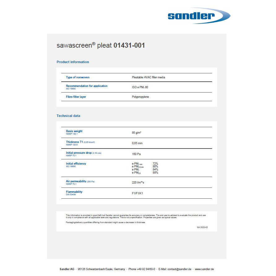 - Low energy consumption due to low resistance premium filtering media (a new type of synthetic material minimises pressure losses thus ensuring up to 25% longer service term).